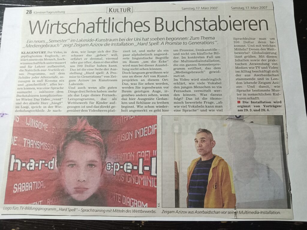 Hard Spell: A Promise to Generations, Kunstraum Lakeside, Klagenfurt, Austria, 2007